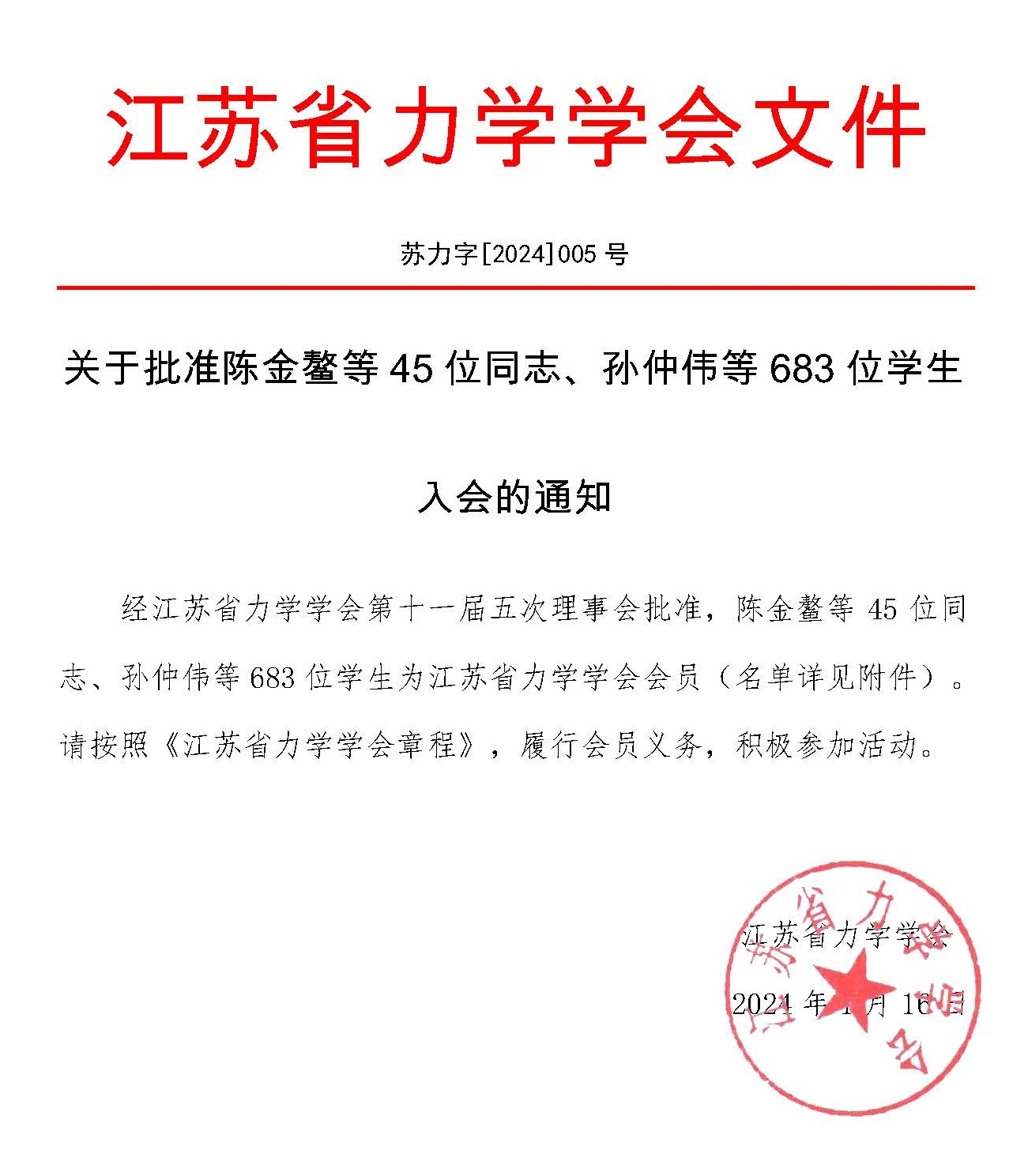 | 我院教师陈金鳌加入江苏省力学学会 |